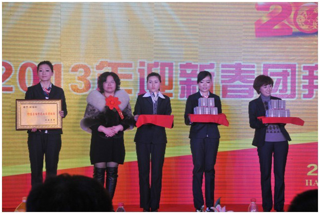 在晚会上,还对2012年度的先进单位及优秀员工进行了通报表彰。通报中讲到:在2012年,全体员工认真贯彻董事会制定的中长期战略规划和“三抓一放”的指导思想,较好地完成了年初下达的经营目标任务,为公司又好又稳发展做出了新的贡献。同时,也涌现出了一大批完成任务好、成绩突出的单位和兢兢业业、尽职尽责的优秀员工。为弘扬正气,激励先进,以榜样的力量感召人,以先进的事迹激励人,掀起比、学、赶、帮、超的良好氛围,公司决定对刘佳玲“终身成就奖”、李超芬等3名“特别贡献奖”、财务计划部等3个“先进单位”和白桦等18名“优秀员工”给予通报表彰,并分别对优秀员工、特别荣誉奖、学习深造奖、先进单位奖、特别贡献奖、终身成就奖六个奖项进行了致辞。