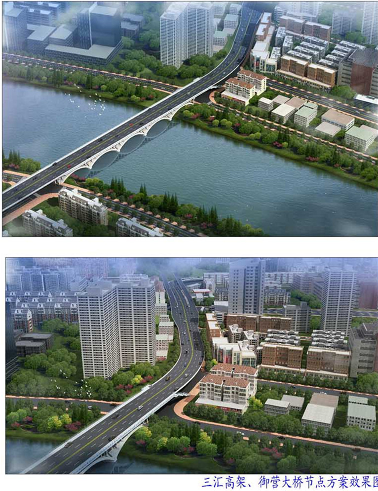 三汇立交至绵吴路段道路改造提升工程:项目位于涪城区,建设内容包括桥梁和道路,主线全长1371米,桥梁主要为高架桥,道路主要为引道及辅道,包含对御营大桥北桥头三汇高架桥约200米的加宽改造,同步对御营大桥加固与桥面改造成双向六车道,并新建长约490米的御营大桥至绵吴路口的双向四车道高架桥。配套建设人行过街设施、排水工程、照明工程、绿化工程以及其他附属工程。