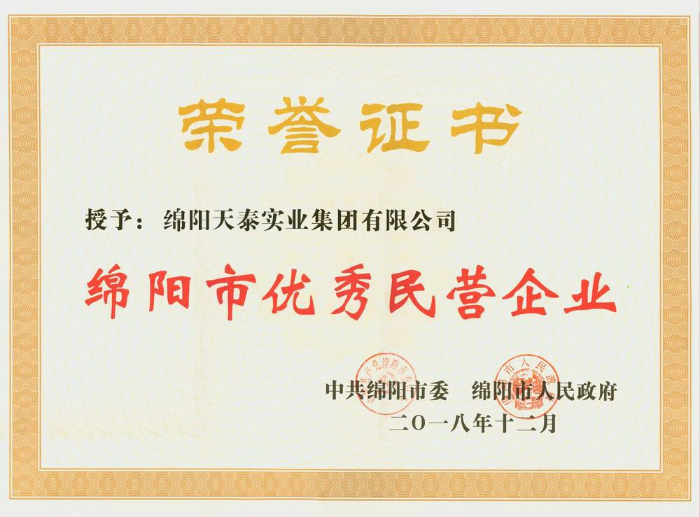 会议对绵阳市经济发展做出贡献的50位优秀企业家和50家优秀民营企业颁发荣誉证书,中九建工集团和其股东公司绵阳天泰集团双双名列榜单。
